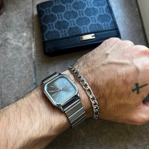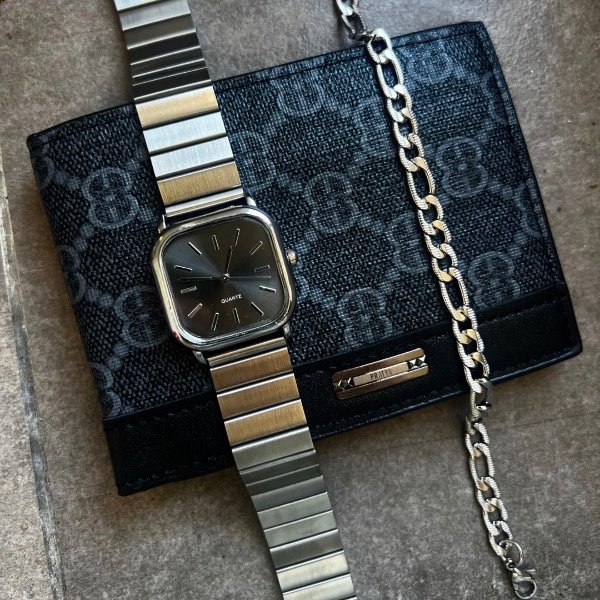reloj estilo old money, billetera y pulsera de acero inoxidable (19 cms)