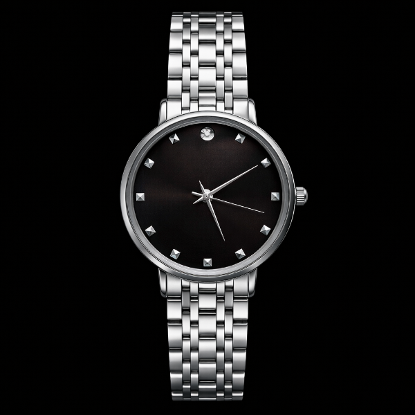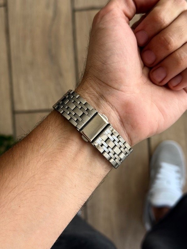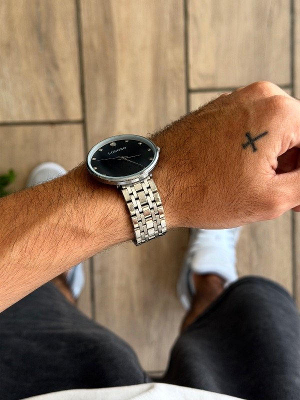 La caja y malla de acero inoxidable plateado se combinan con una esfera oscura profunda que aporta carácter y sobriedad. Cada detalle está pensado para acompañar sin imponerse, transmitiendo presencia, orden y estilo.